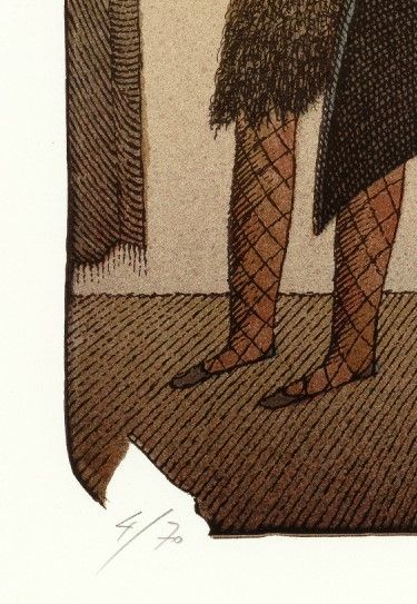Spor Pantalona s Harlekýnem, litografie, 24 x 30 cm.