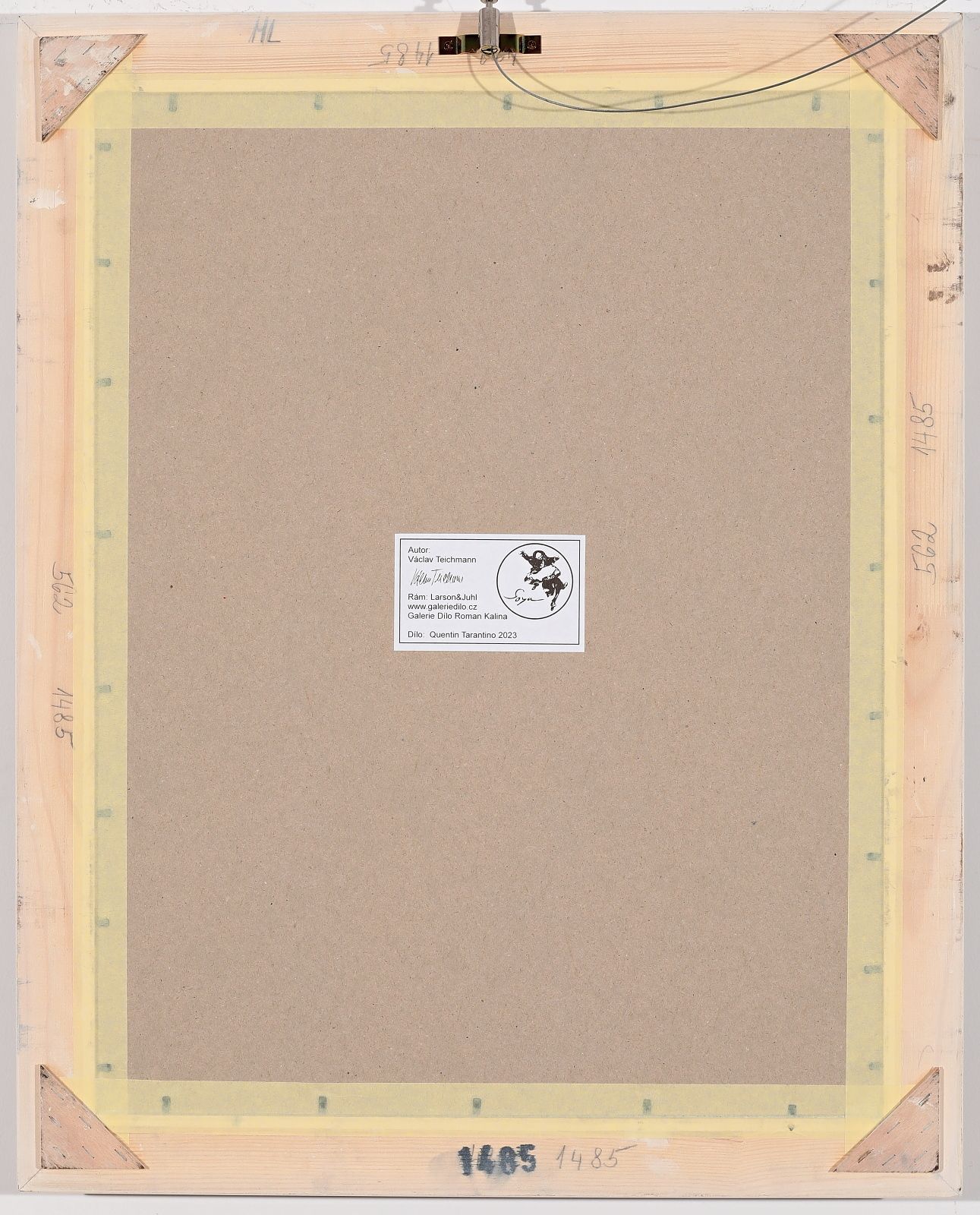 Quentin Tarantino, kombinovaná technika, 41 x 29 cm, signováno a datováno vpravo dole Václav Teichmann 2023.