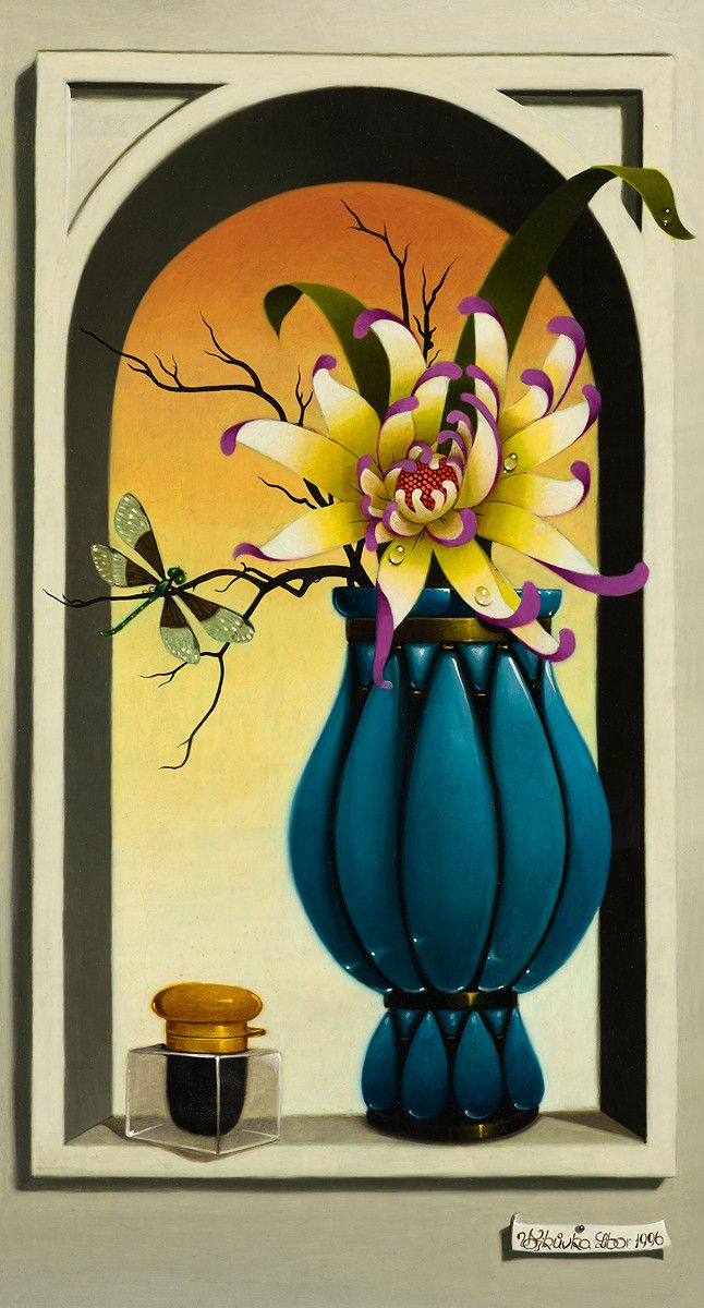 Zátiší s nádherným květem, 1996, olej na plátně, 44 x 23,5 cm.