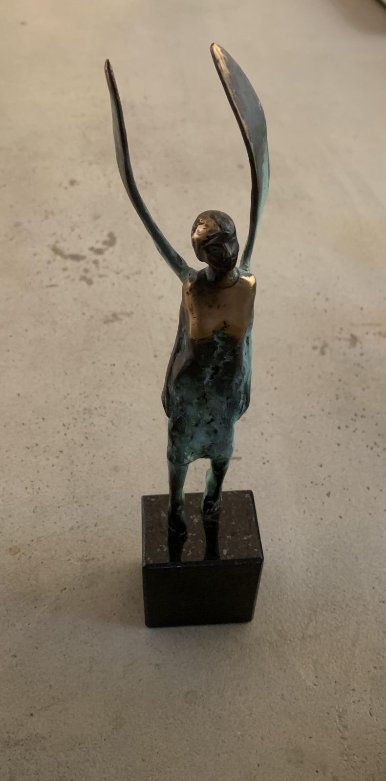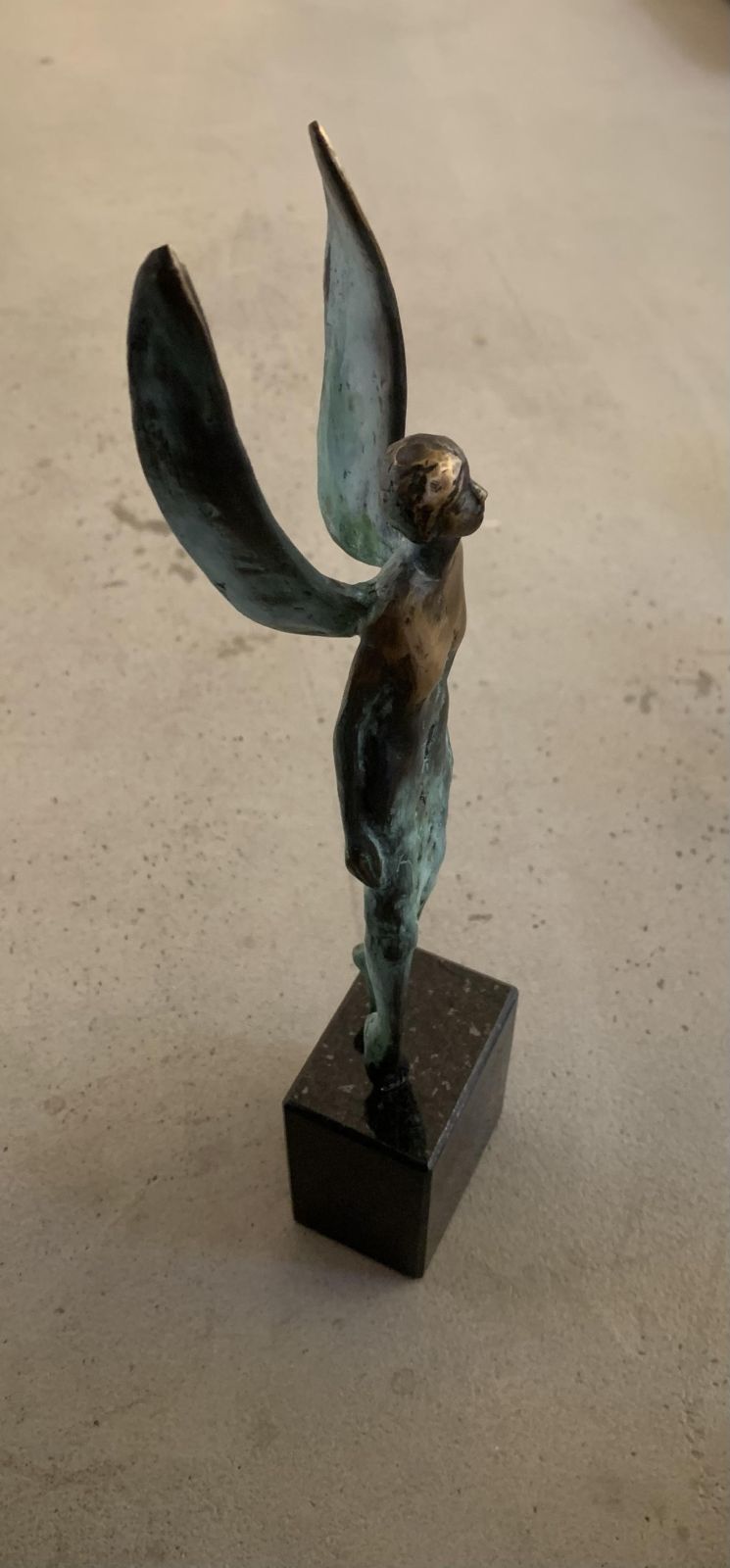 Anděl, bronzová plastika, výška 29 cm.