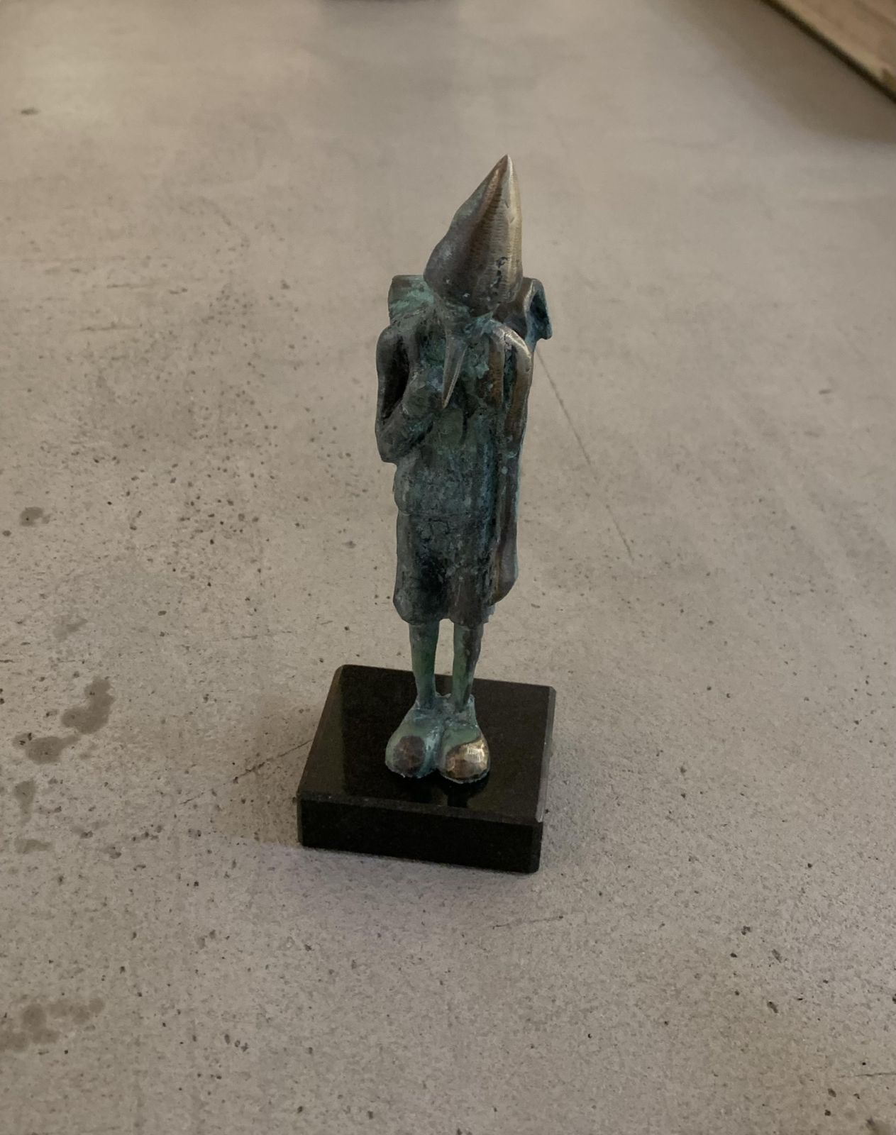 Pinocchio s aktovkou, bronzová plastika, výška 21 cm.