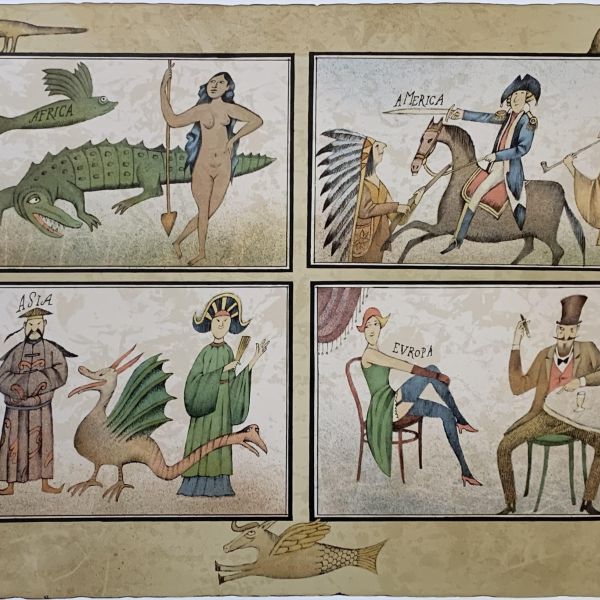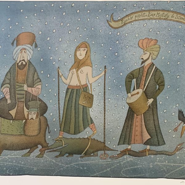 Born Adolf - Cestovatel Alberto Vojtěch Frič s indiánem Čerwuišem potkávají mistra Mikoláše Alše (Prodáno)