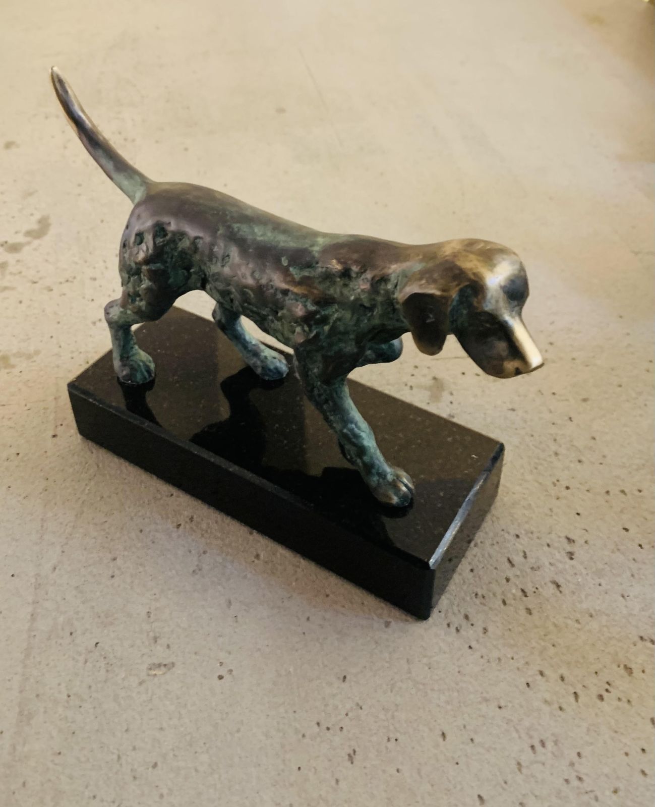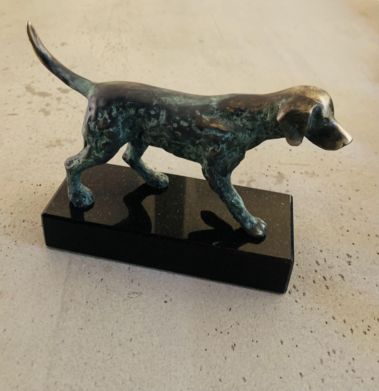 Pes, bronzová plastika, výška 16 cm.